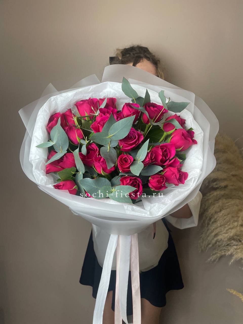 15 роз сорта джумилия, лента, дизайнерская упаковка.