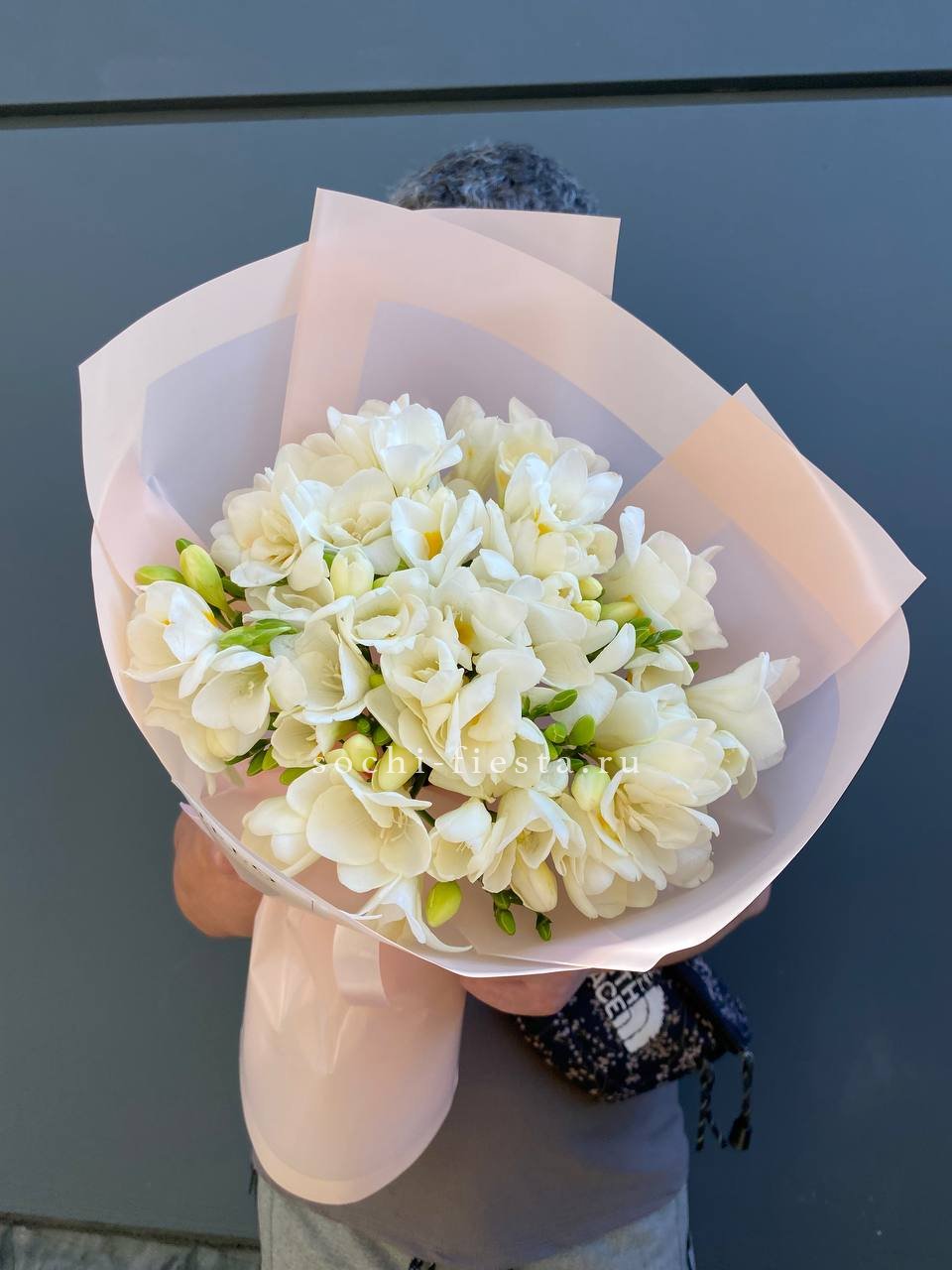Мы работаем только со свежими цветами — букеты радуют от 7 до 14 дней и дольше при правильном уходе.