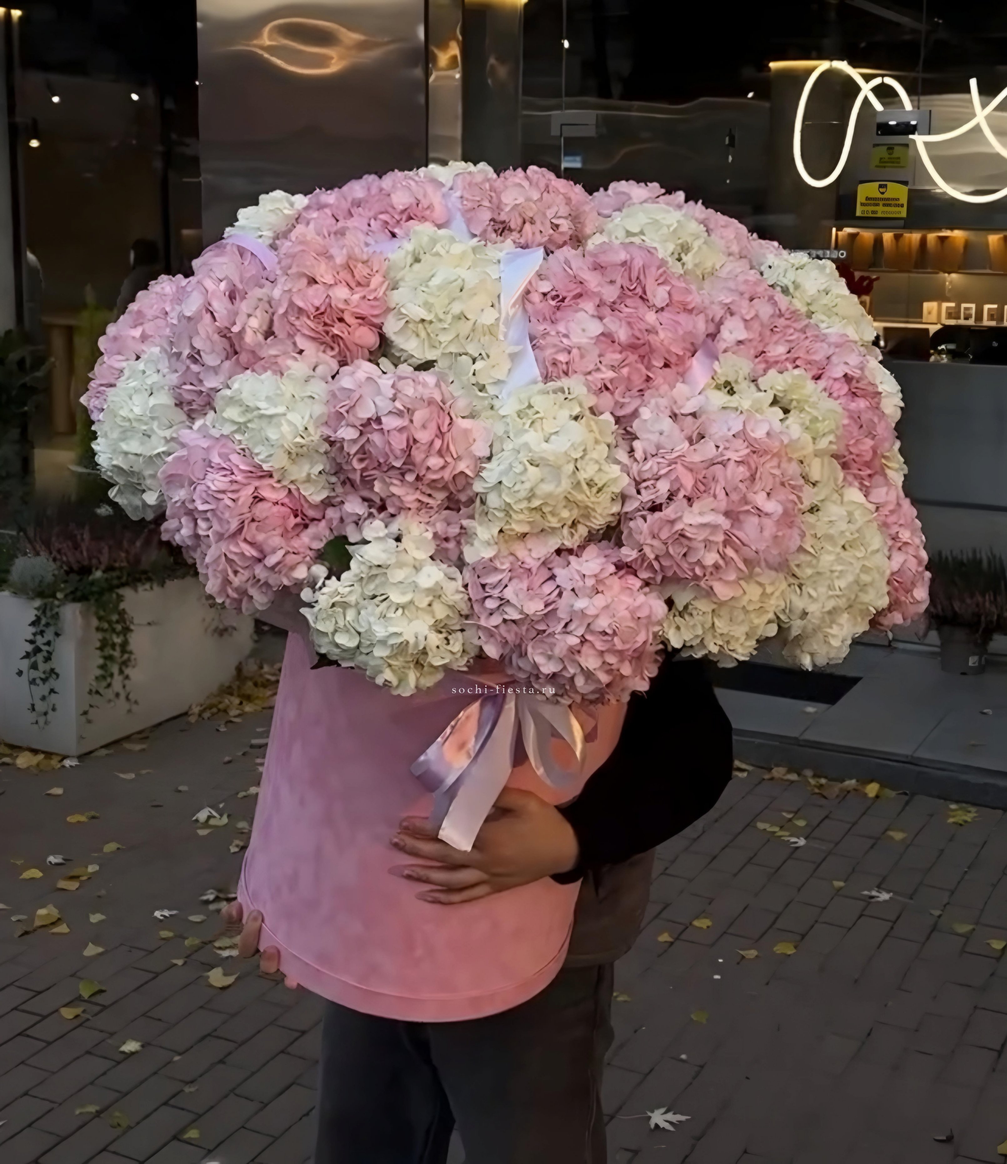 гортензия 15 шт., лента, дизайнерская упаковка.