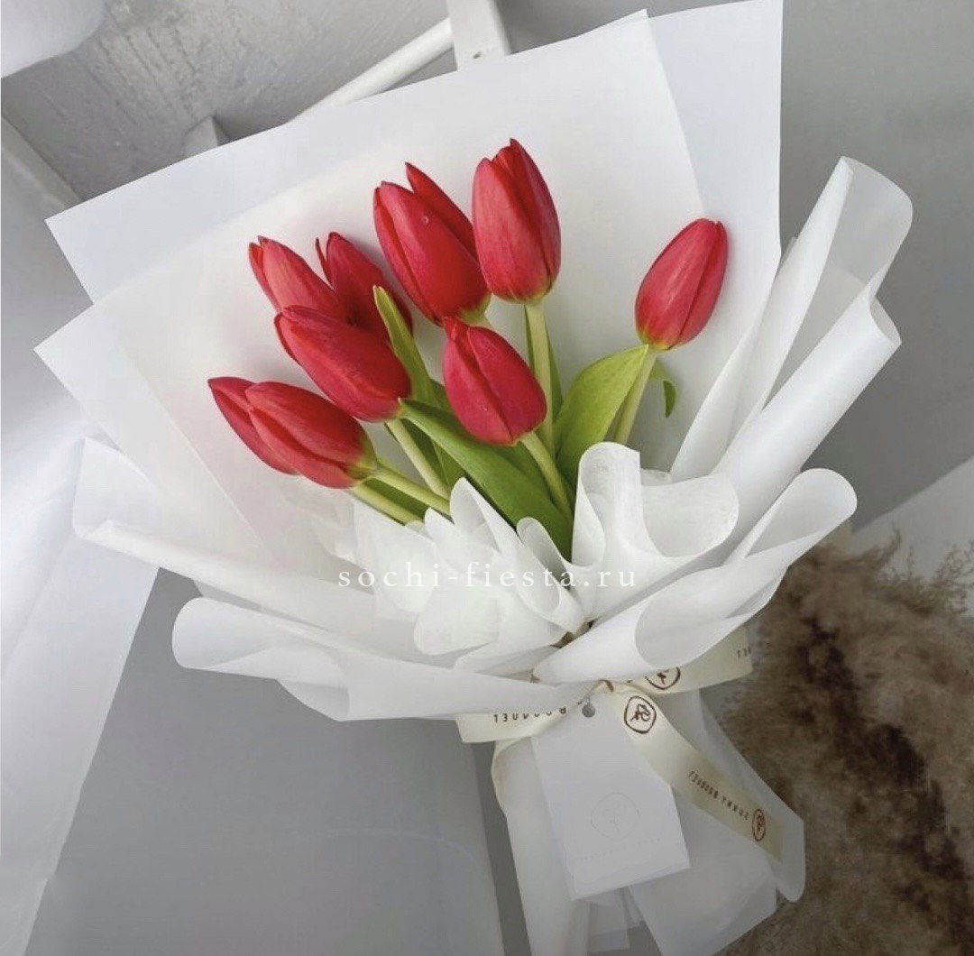 изначальная цена указана за букет из 15 тюльпанов Состав букета: от 15 тюльпанов, лента, упаковка.