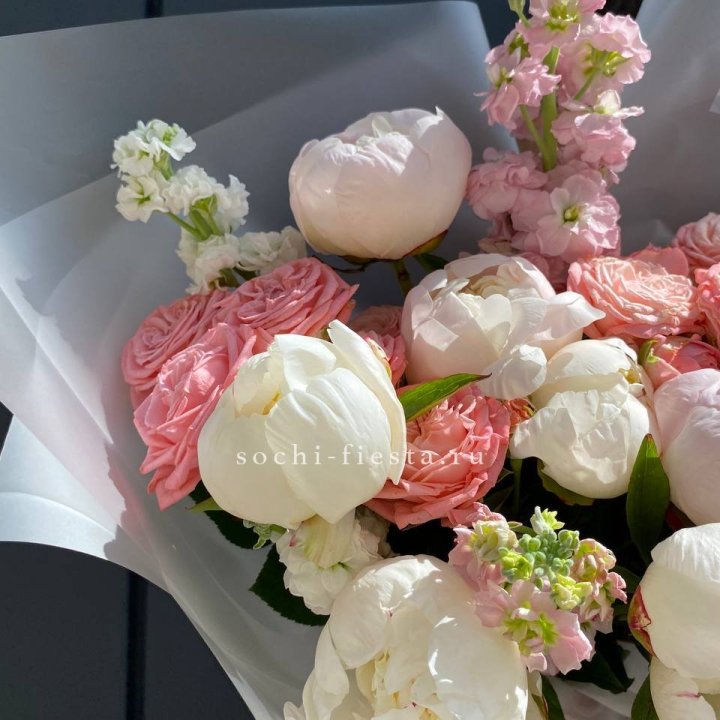 авторский букет из ранункулюса анемонов и нигеллы в нежной сиренево-персиковой гамме для подарка в региональном городе авторский свадебный букет из пионов и клематиса в кремово-белой гамме для невесты в региональном городе