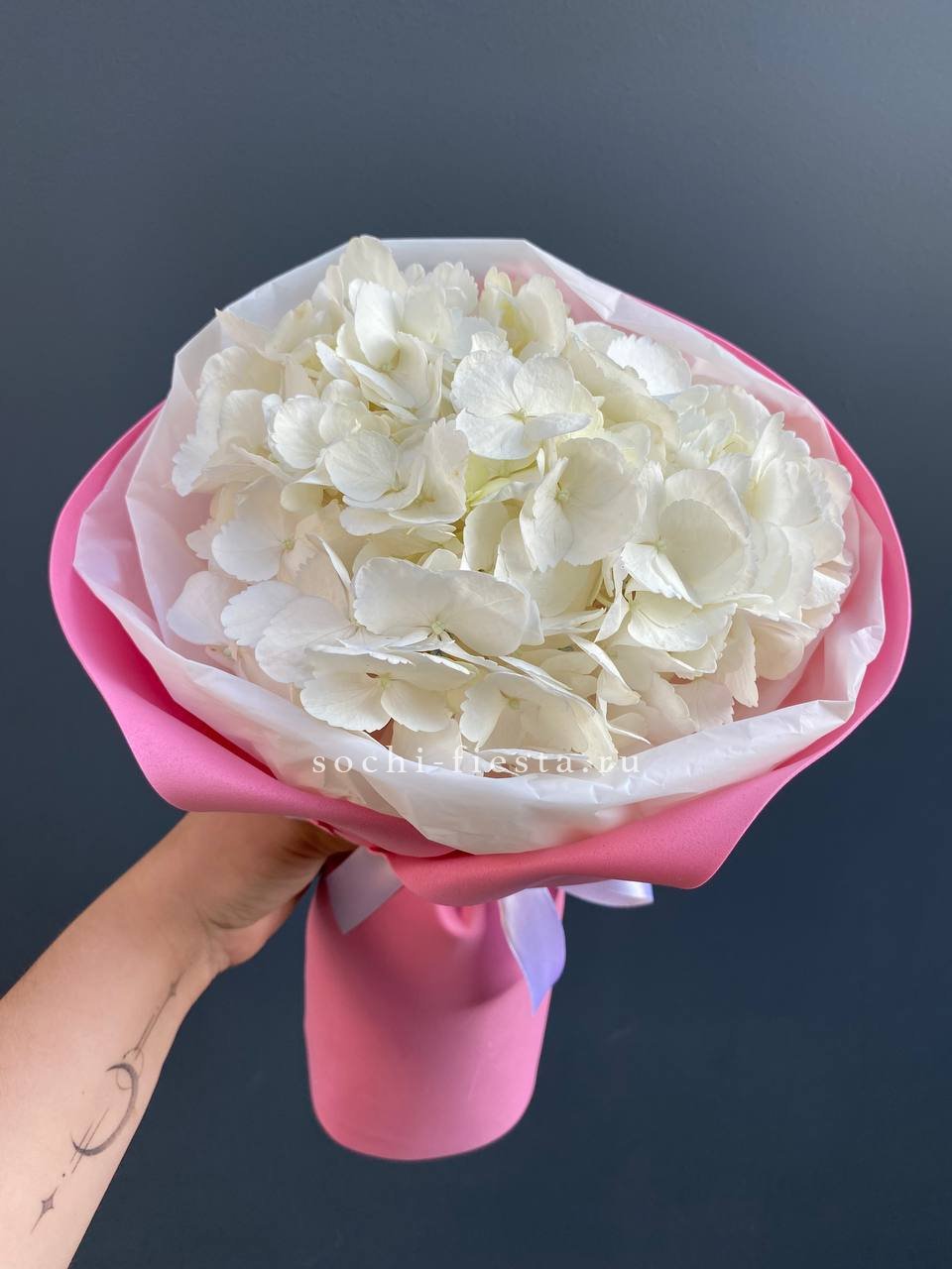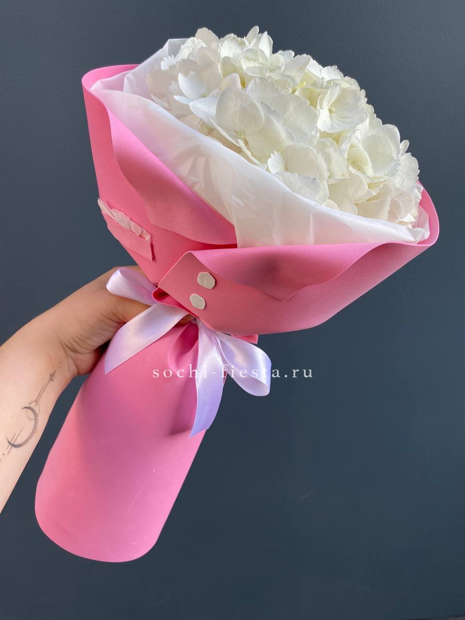 гортензия, протея, хамелациум, диантусы (или эустома), антуриум или лист стрелиции, дизайнерское оформление.