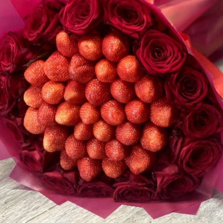 Букеты с клубникой — это оригинальные и аппетитные композиции, сочетающие свежие или декоративные цветы с яркими, сочными ягодами клубники. Такие букеты отлично подходят для романтических подарков, летних мероприятий, свадеб или просто для того, чтобы порадовать близких вкусным и красивым сюрпризом.