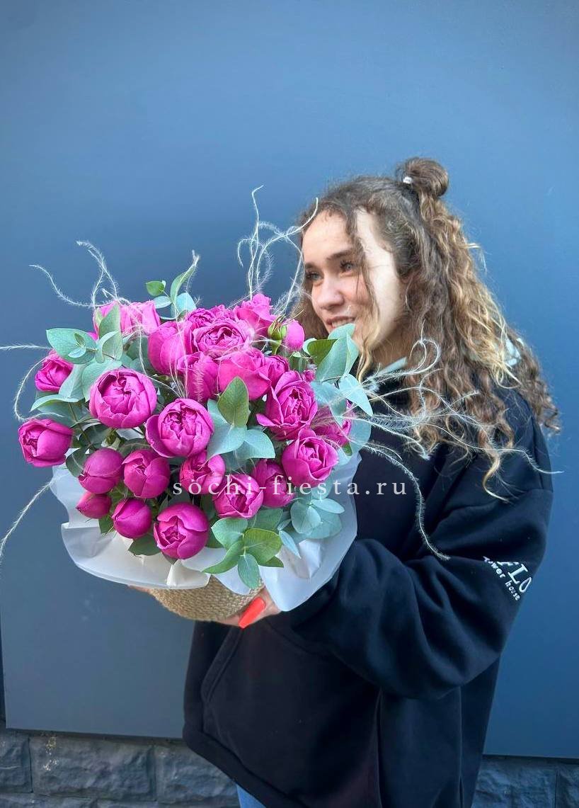 Для заказа товара "Пионовидные розы в джутовом кашпо " с доставкой в Орле нажмите в корзину