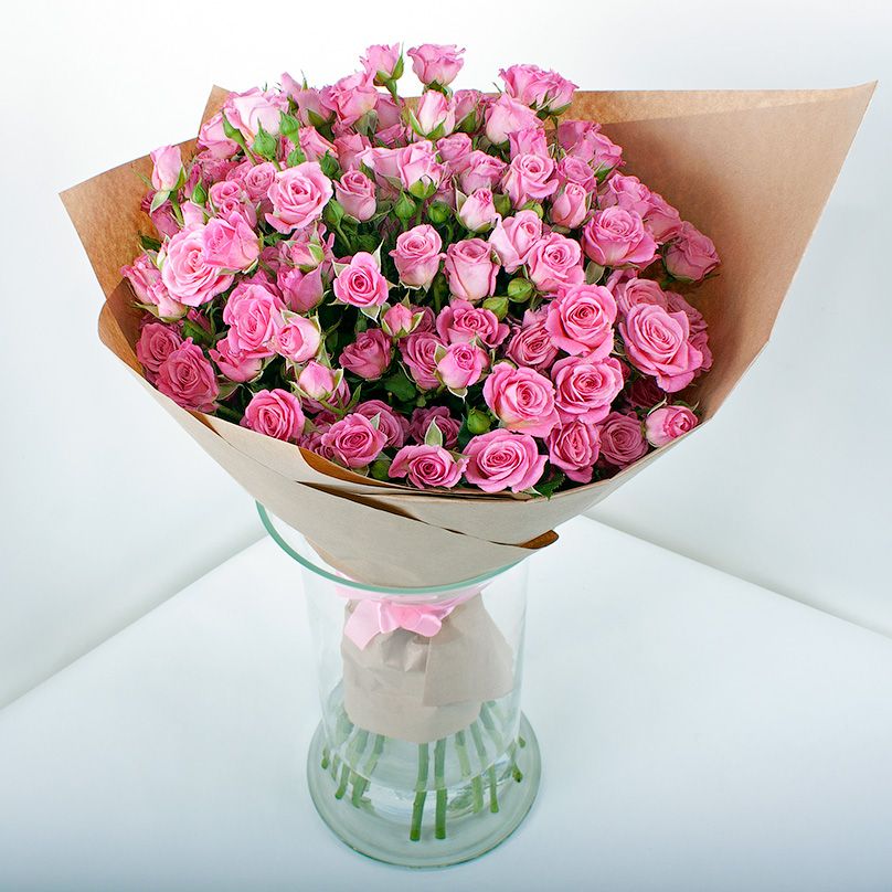 Состав букета на фотографии: 29 роз карина, крафт, лента