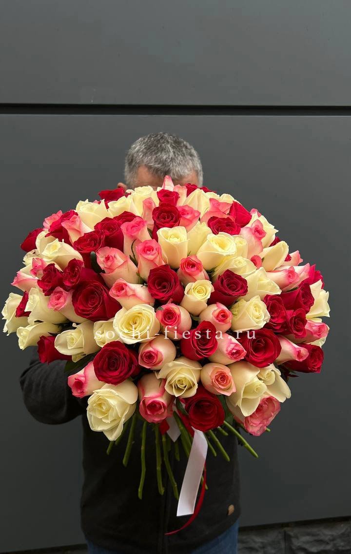 Мы работаем только со свежими цветами — букеты радуют от 7 до 14 дней и дольше при правильном уходе.