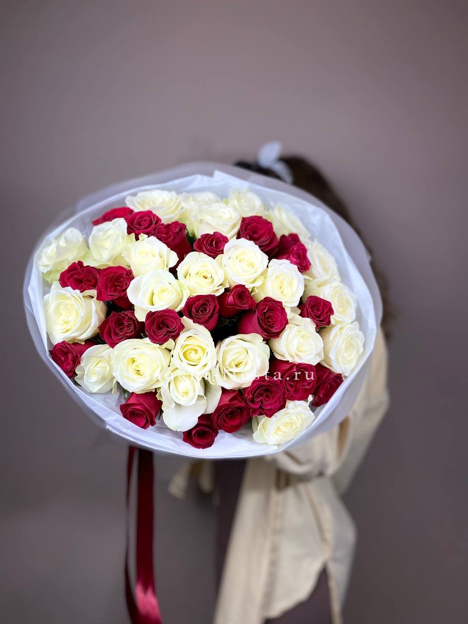 Для заказа товара "Букет из красных белых 45 роз" с доставкой в Орле нажмите в корзину
