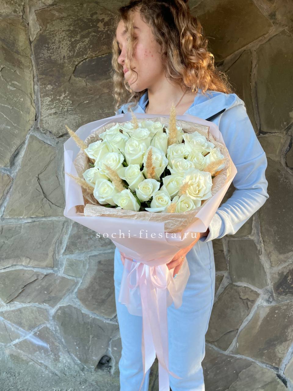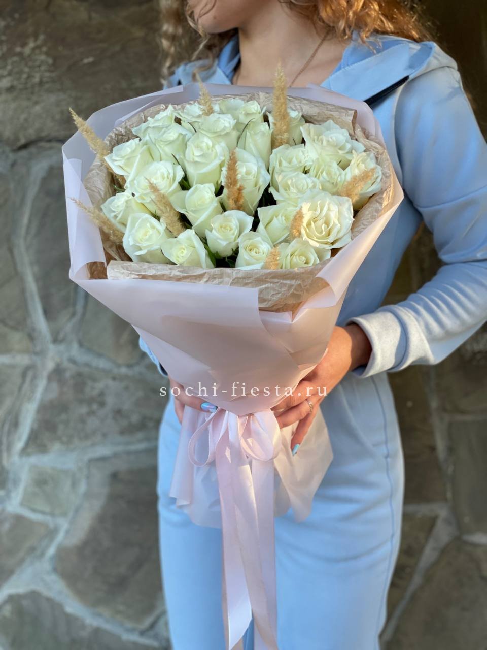 Для заказа товара "25 белых роз с сухоцветами" с доставкой в Орле нажмите в корзину