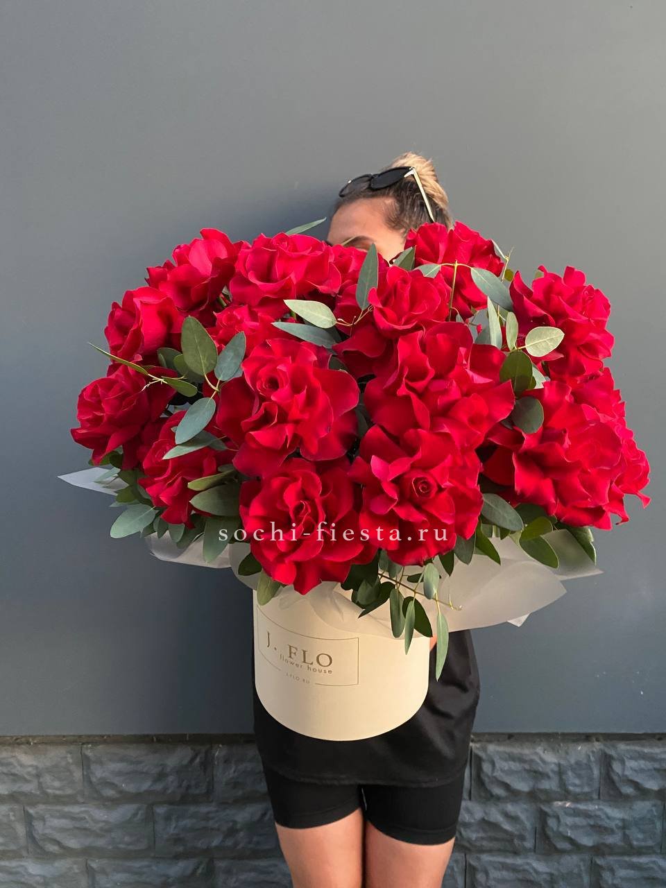 Red Naomi в графичной упаковке BLVCK — это игра между классическим красным и современной подачей. Плотные бутоны раскрываются медленно, сохраняя форму и насыщенность цвета.