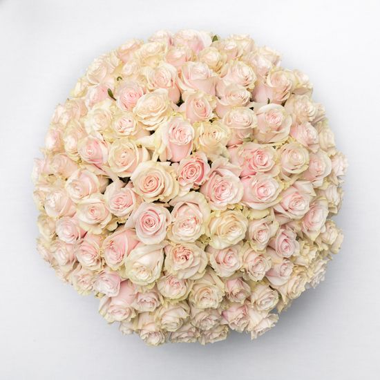 Двадцать пять бутонов кремового оттенка собраны в классический монобукет. Мягкая палитра и округлая форма создают спокойное впечатление без лишней декоративности.