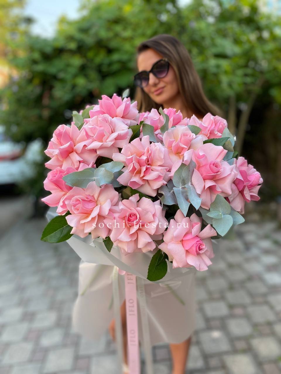 вывернутые розы, эвкалипт, лента, авторская упаковка.