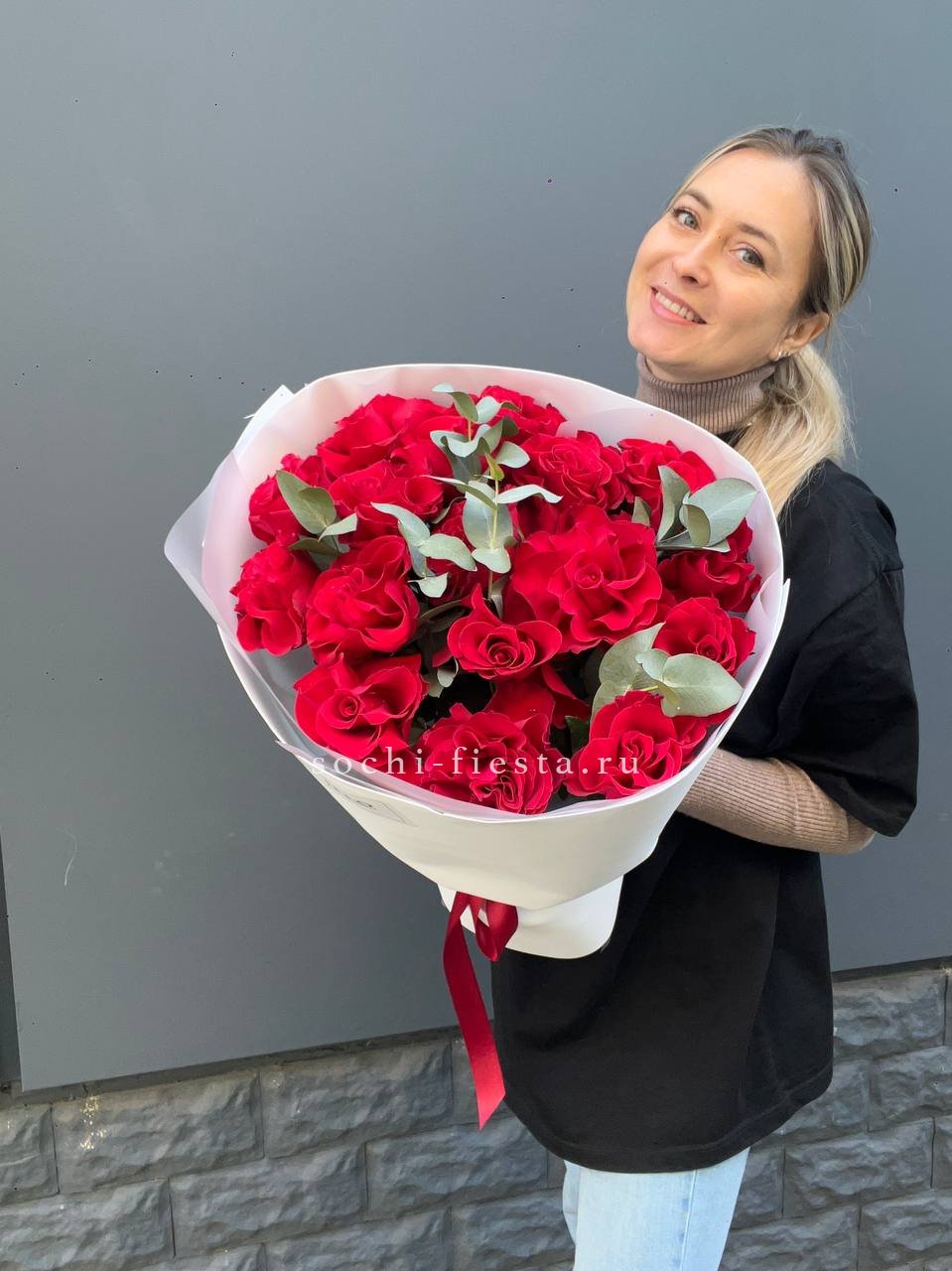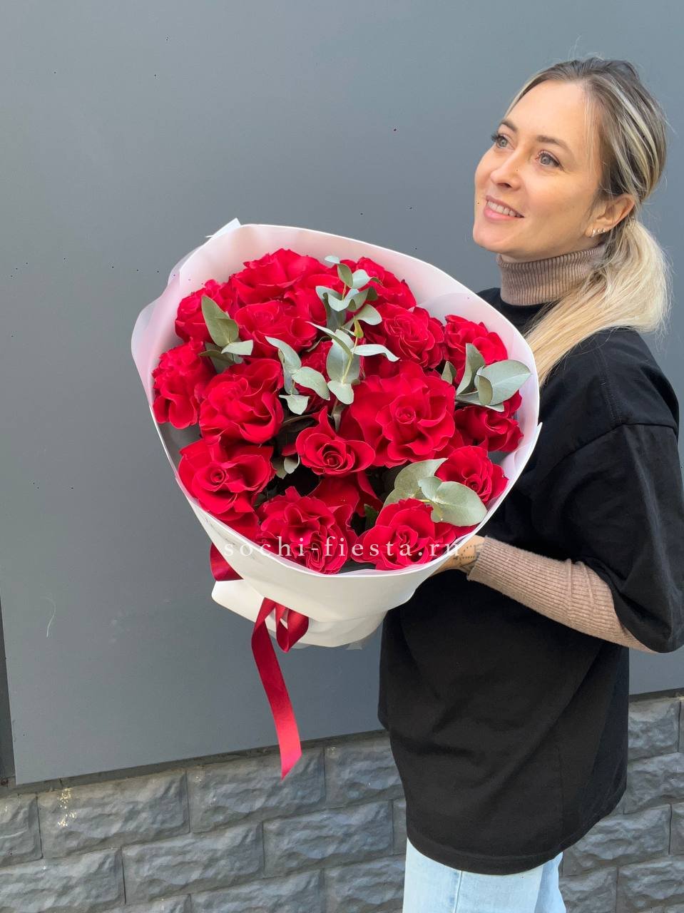 вывернутые розы - 19 шт., эвкалипт - 1шт., лента, авторская упаковка.