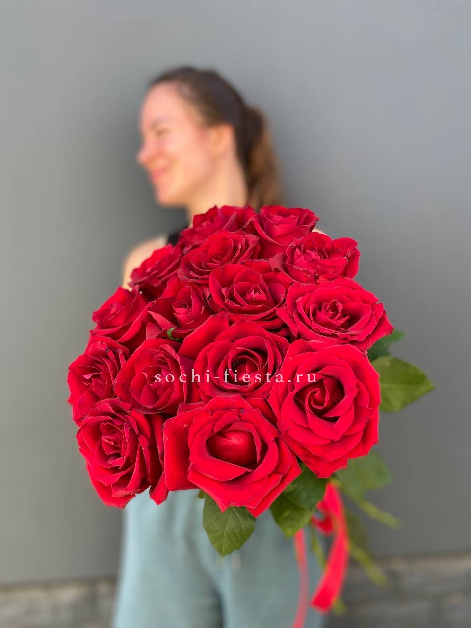 15 красных роз под ленту