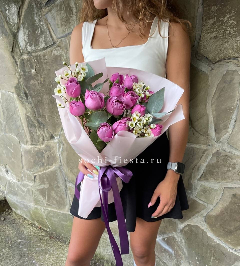 Мы работаем только со свежими цветами — букеты радуют от 7 до 14 дней и дольше при правильном уходе.