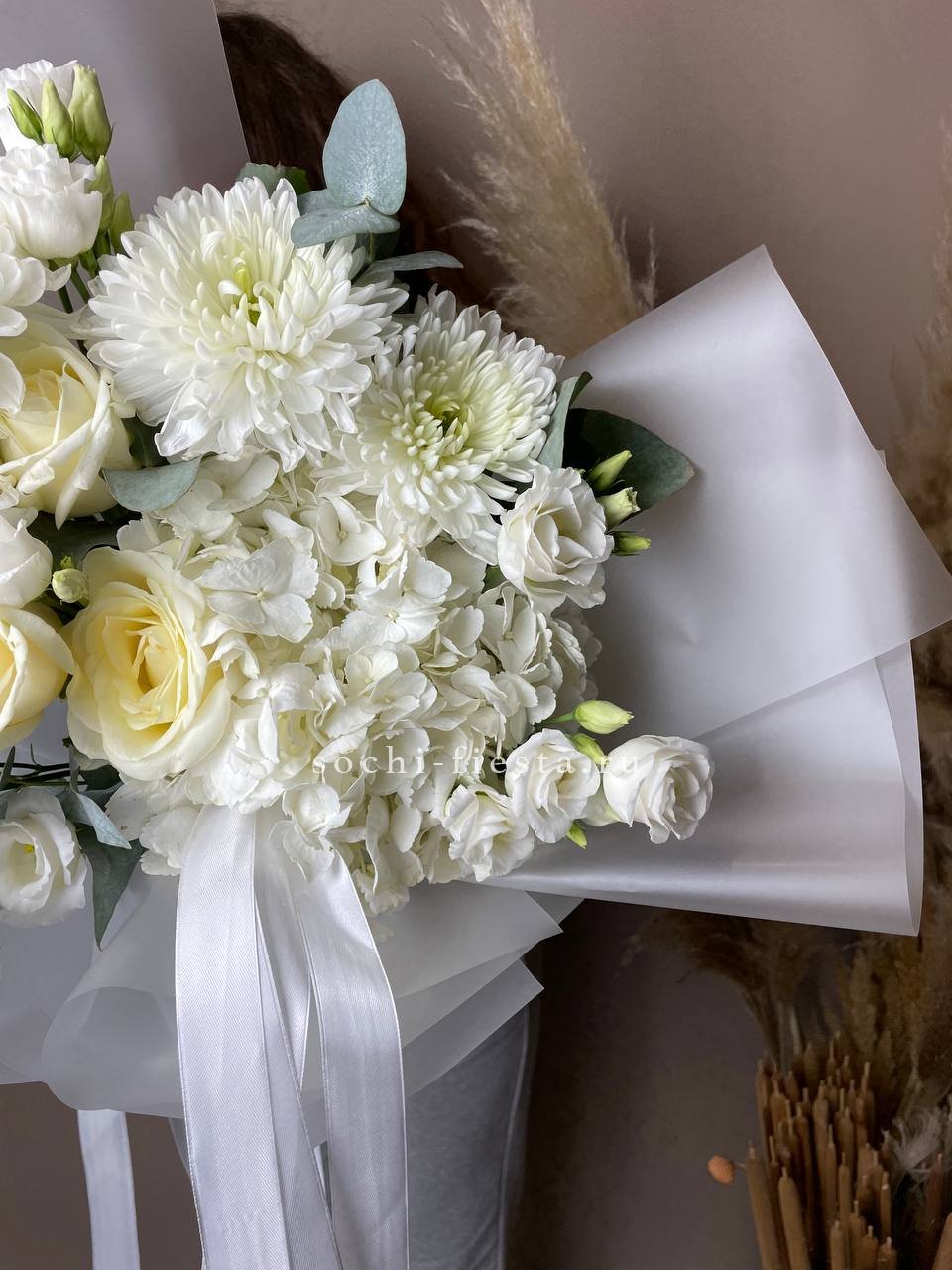 гербера, роза, диантус, гортензия, хлопок, хризантема, озатамус, упаковка.