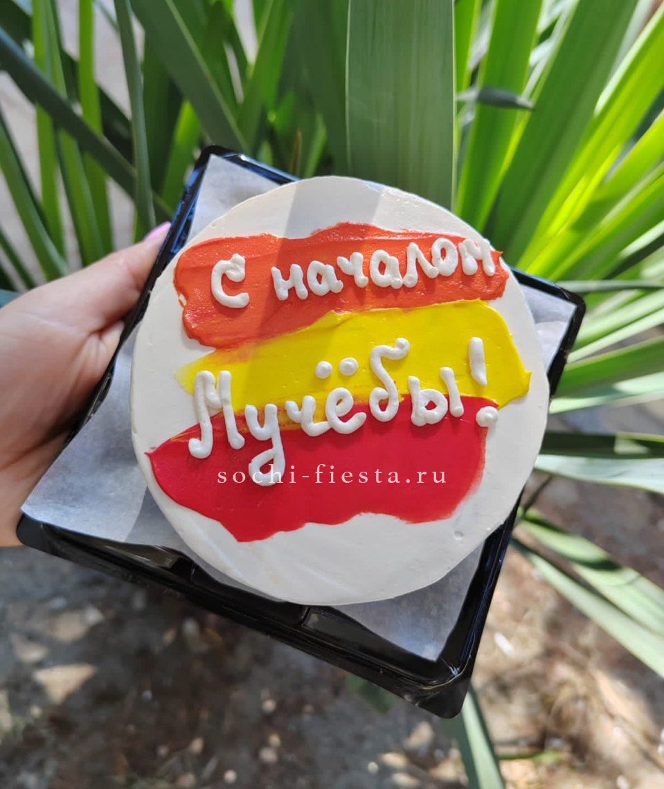 Компактный торт ручной работы с тематическим оформлением к началу учебного года. Два варианта начинки дают возможность выбрать вкус по настроению. Декор и упаковка уже включены в готовую композицию.