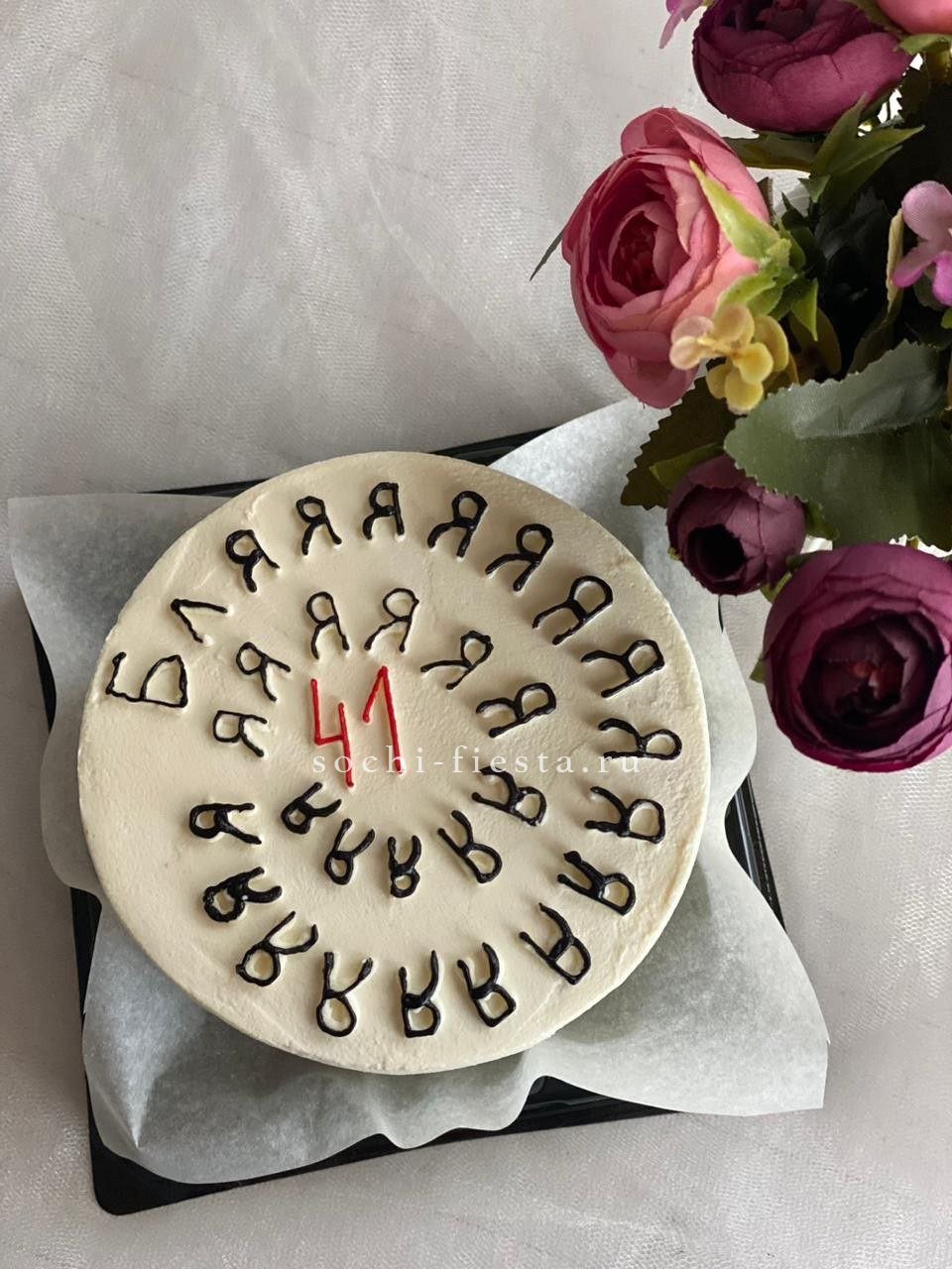 Компактный торт с юмористичной надписью о масштабе чувств. Ручное исполнение и авторский декор делают каждый экземпляр уникальным. Две начинки на выбор: клубничный пломбир или шоколадный трюфель.