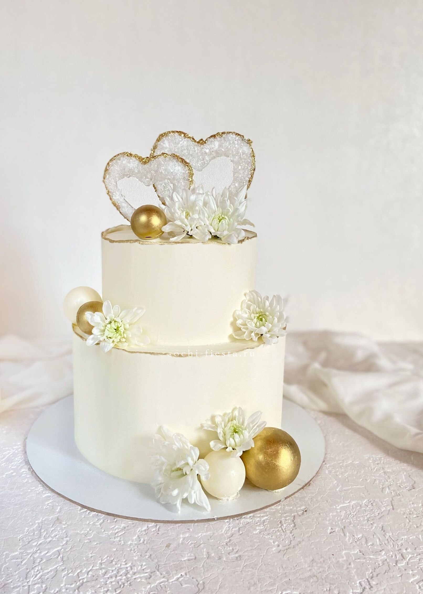 Двухъярусная композиция впечатляет масштабом и проработкой деталей. Ручная работа с тремя вариантами начинки создаёт завершённый образ. Объёмное решение для значимых событий в жизни двоих.